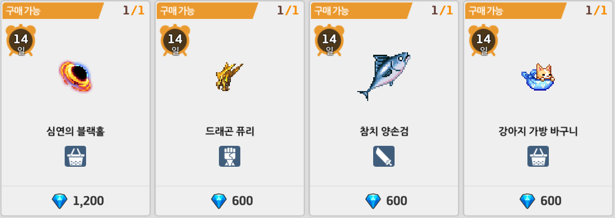 | - 구독 상품 구성 1000젬 x 10일 | - 구매 즉시 지급 ㄴ 소환 컨트롤러 x 100 ㄴ 에픽 초월 망치 x 1 |