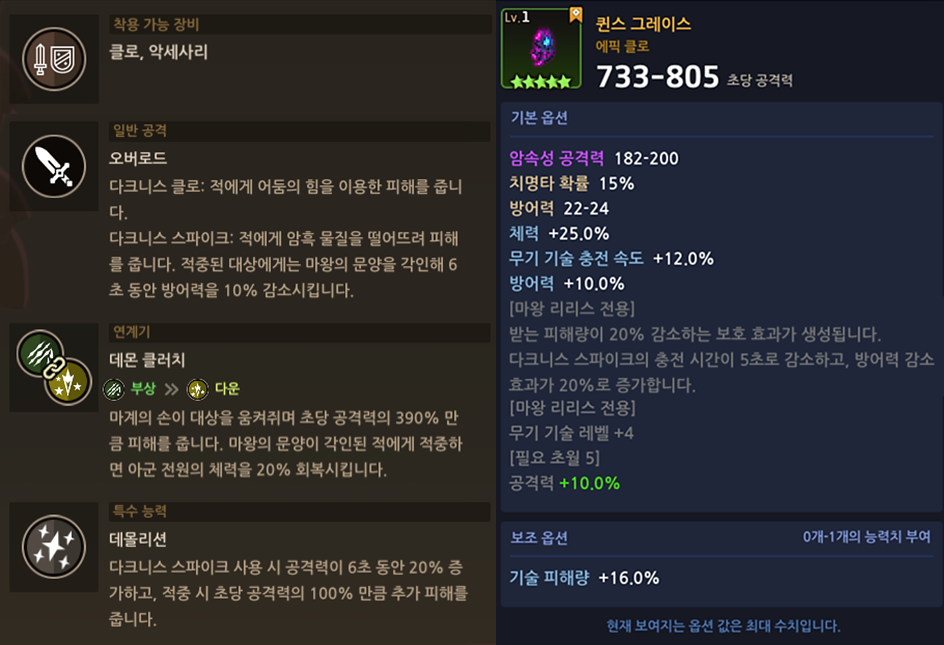 - 마왕 리리스의 전용 무기인 퀸스 그레이스가 추가됩니다.