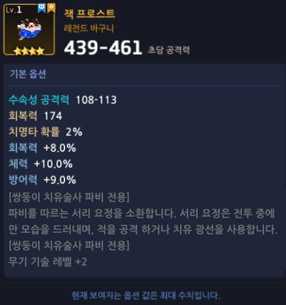 ㄴ 파티 효과, 영웅의 능력, 장비 옵션이 합산된 수치를 기준으로 적용됩니다.