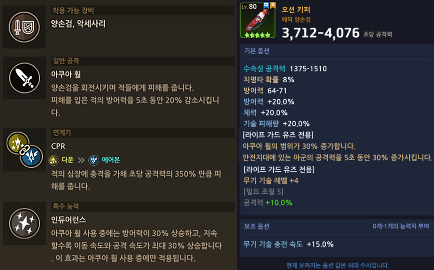 | 브레이브 하트 | 전용 옵션의 탄환 피해량이 13.8% 증가합니다. |