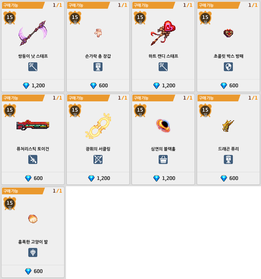 | 유니크 영웅 or 전용 무기 | 소환 컨트롤러 10개 |