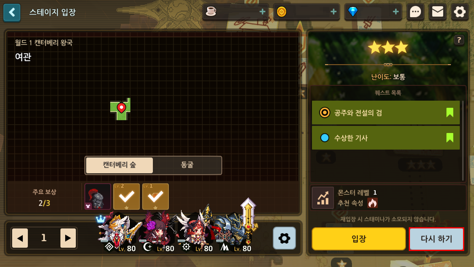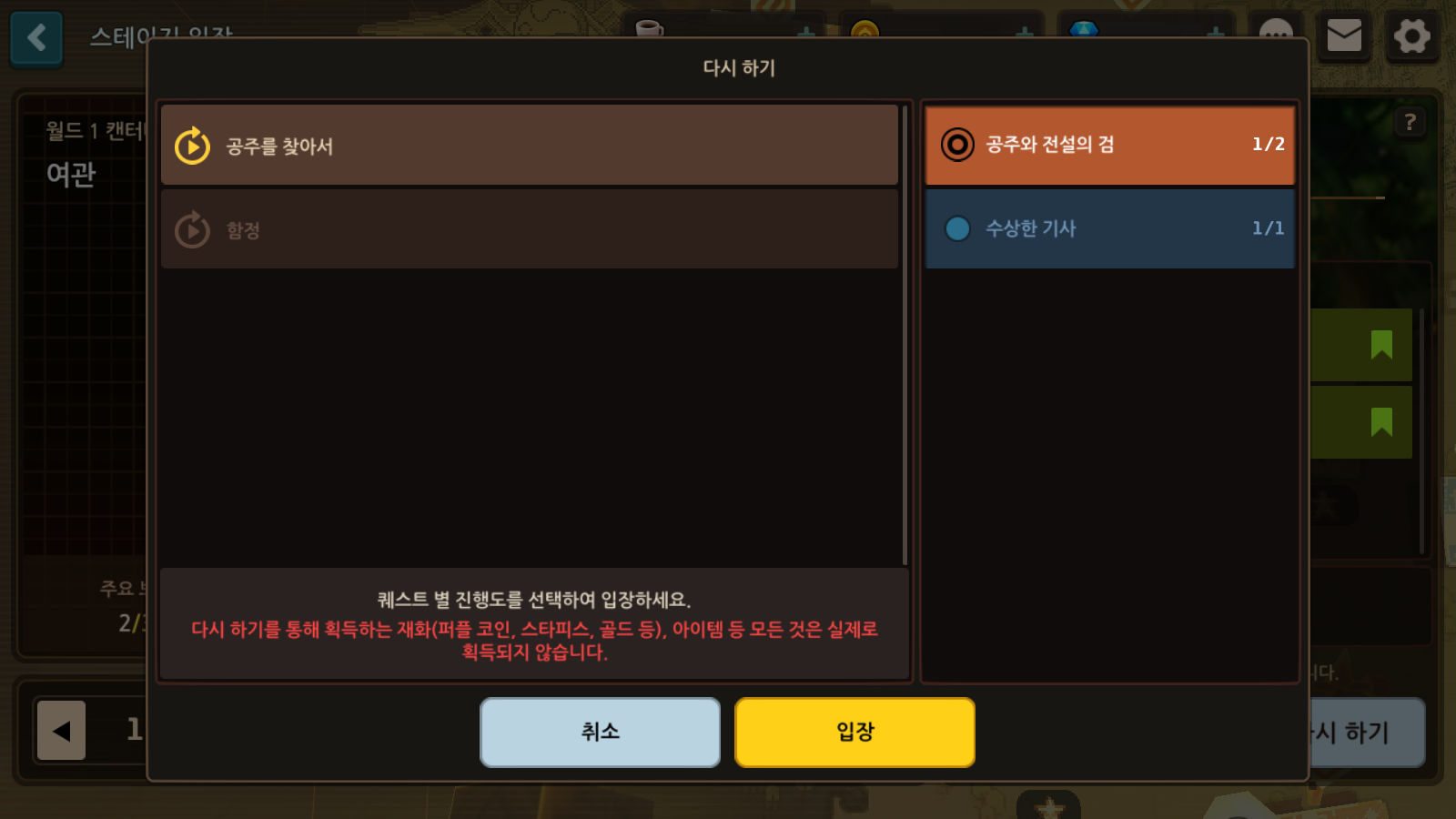 - 스토리 다시 하기 시 현재 선택된 파티로 스테이지에 입장합니다.