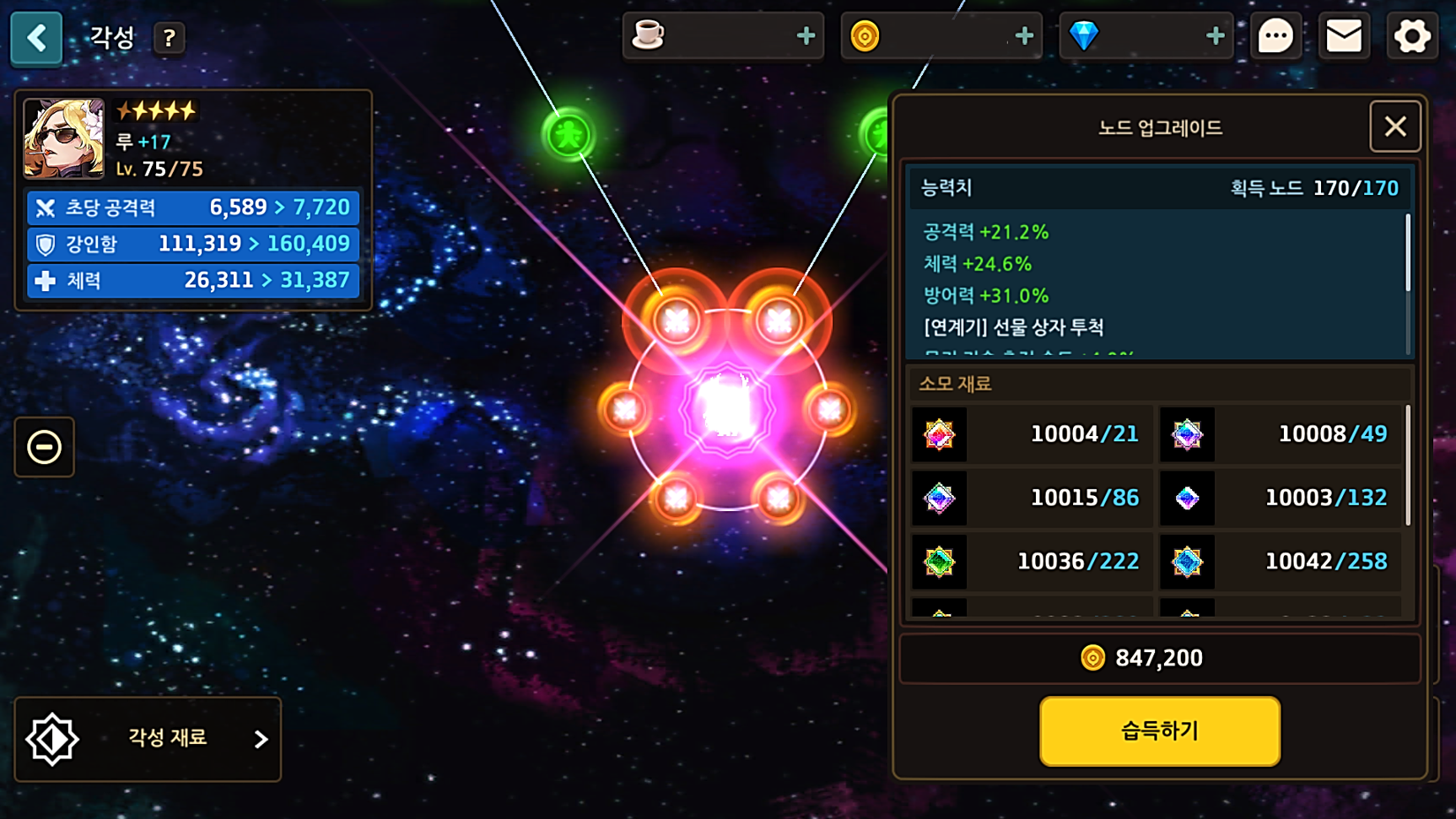 - 각성 노드 습득하기 팝업UI에서 소모되는 재료의 종류를 더 많이 확인할 수 있도록 UI가 개선됩니다.