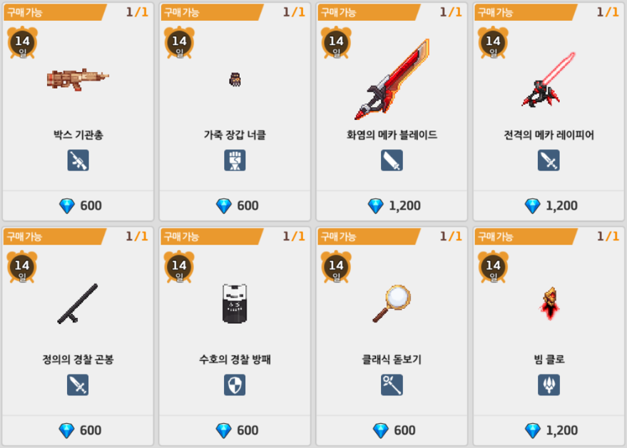 | 빛과 어둠의 렌즈 (중급) | 공격력 -20%, 무기 기술 충전 속도 +50% |