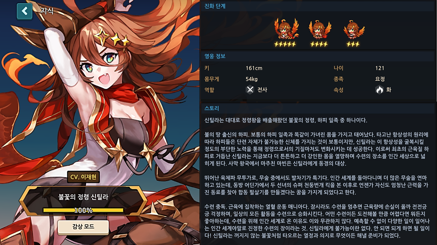 - 유니크 영웅 성장 패키지 (불꽃의 정령 신틸라)