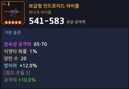 - 신규 장비 보급형 안드로이드 라이플이 추가됩니다.