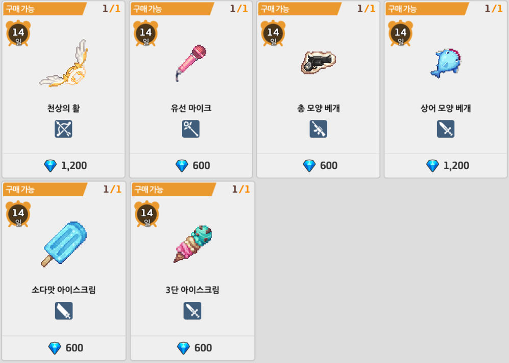 | 슬롯1 | 슬롯2 | 구매 즉시 지급 |