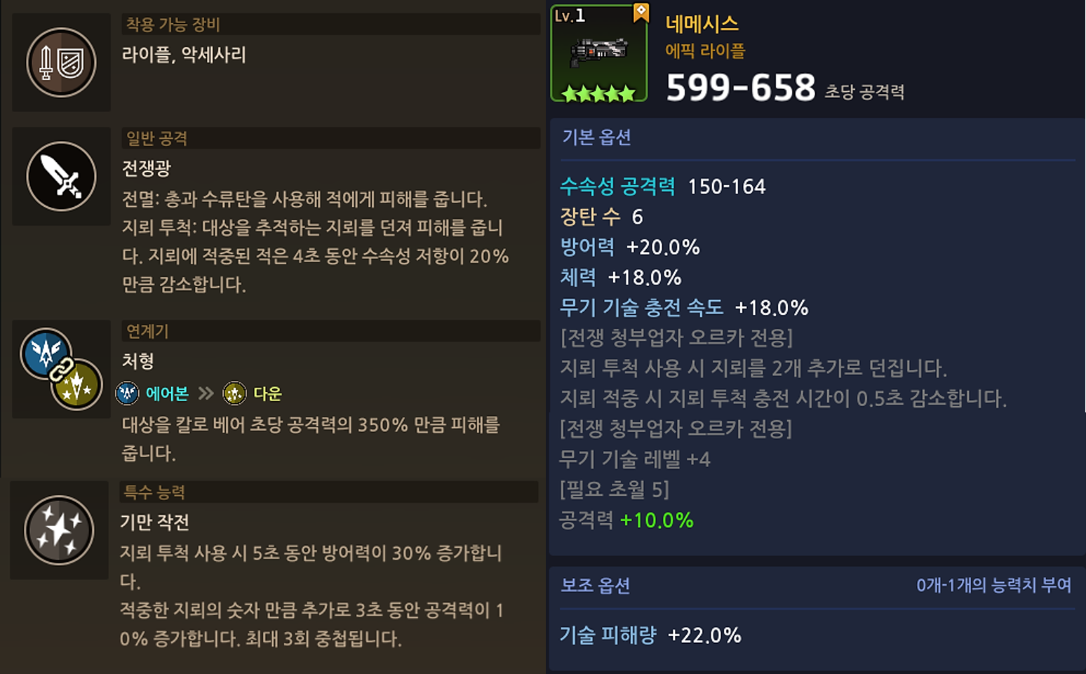 - 전쟁 청부업자 오르카의 전용 무기인 네메시스가 추가됩니다.