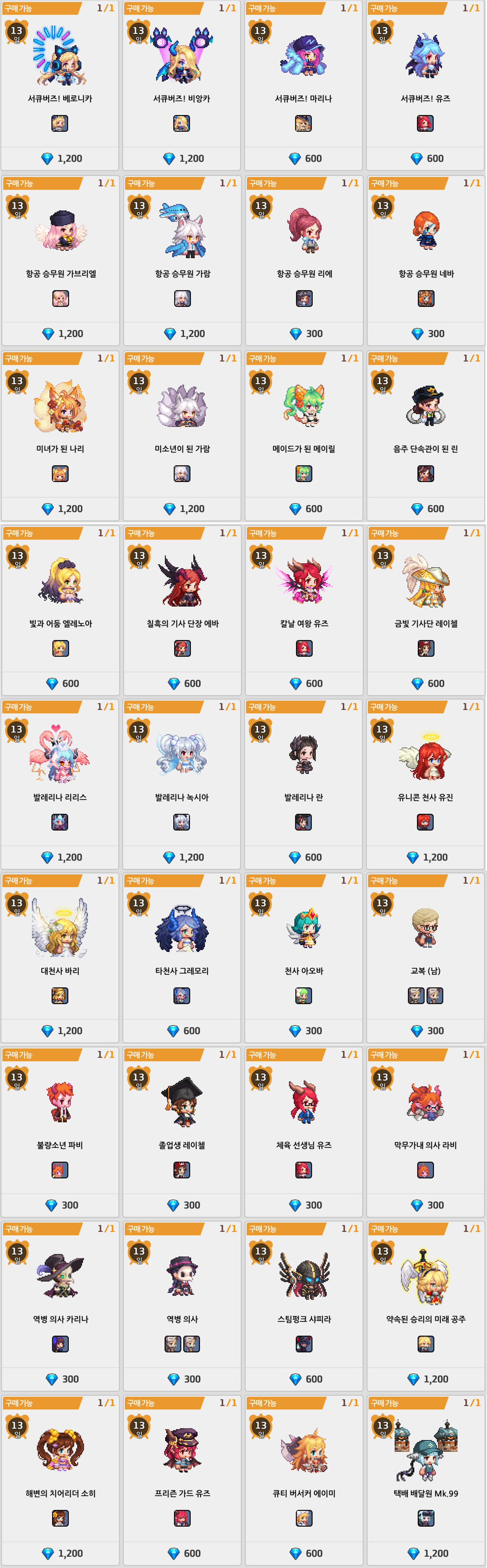 | 유료젬 8,100개 |
