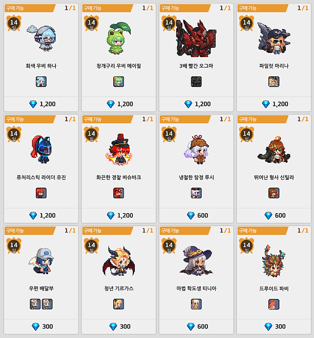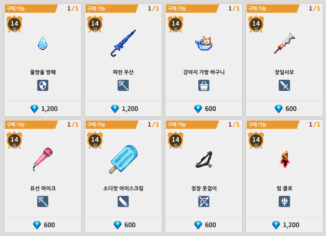 | 슬롯1 | 슬롯2 | 구매 즉시 지급 |