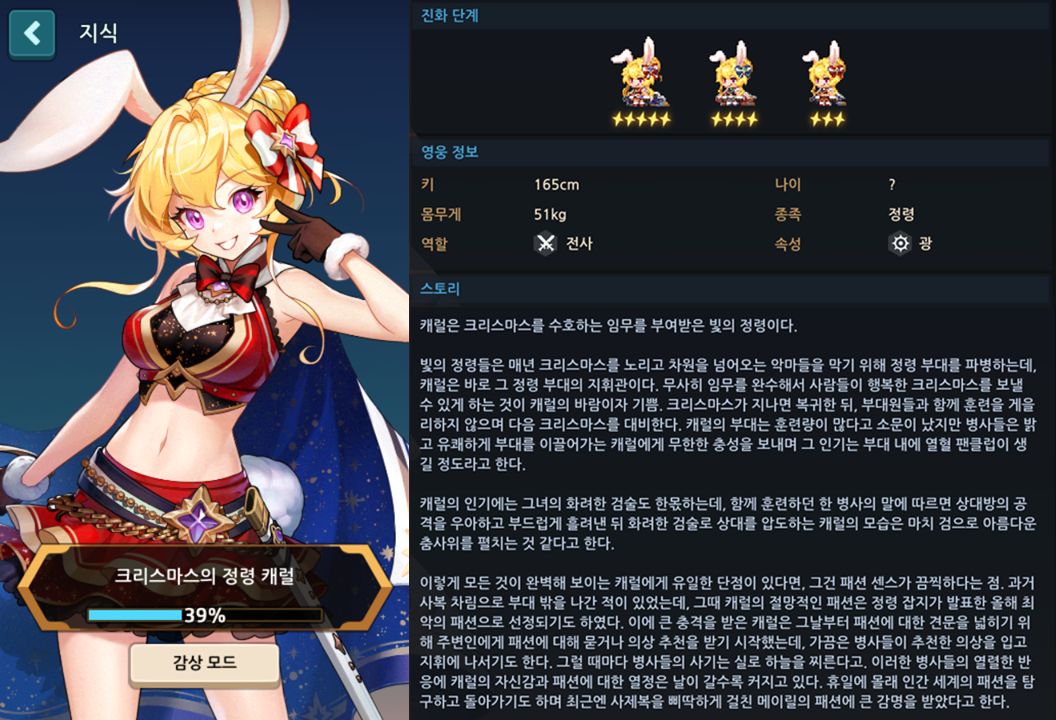 - 유니크 영웅 성장 패키지 (크리스마스의 정령 캐럴)