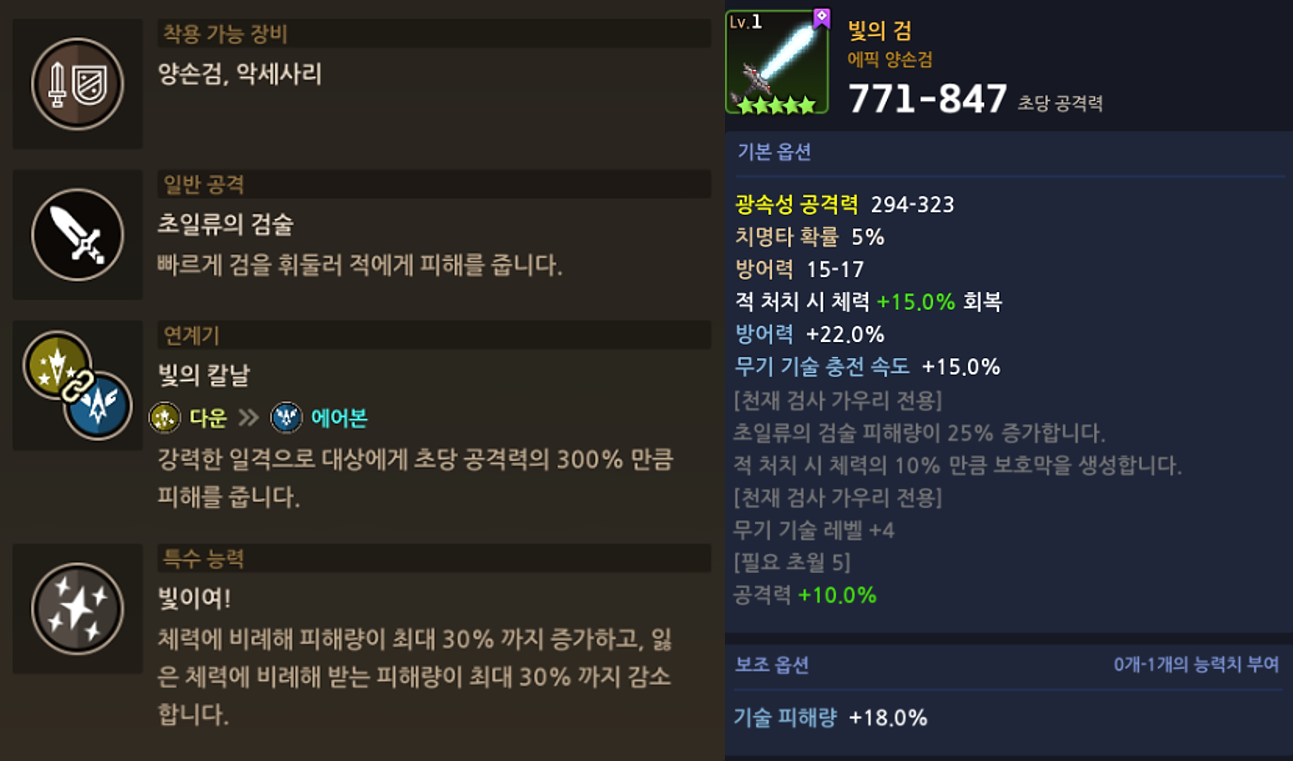 | 알레프 | 함몰(일반 공격)의 속도와 사거리가 약 8% 증가합니다. |