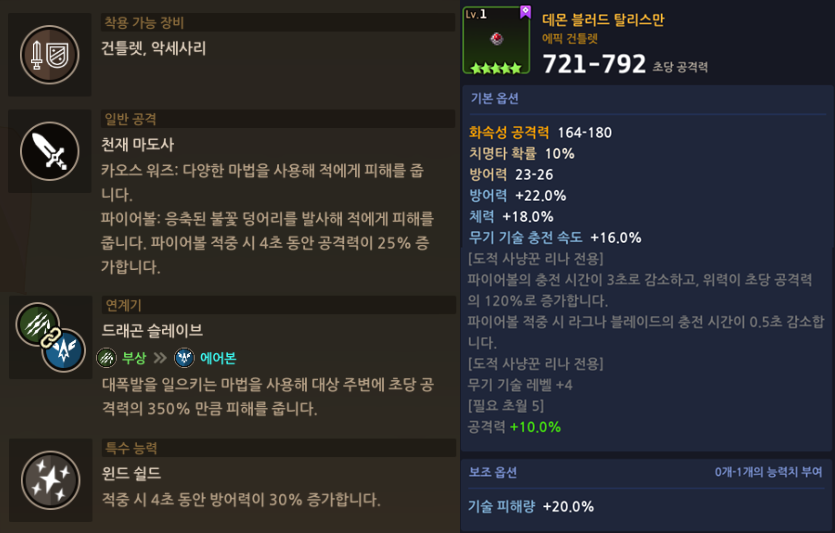 | 드래곤 언어 번역기 (하급) | 치명타 배율 +10.0% |