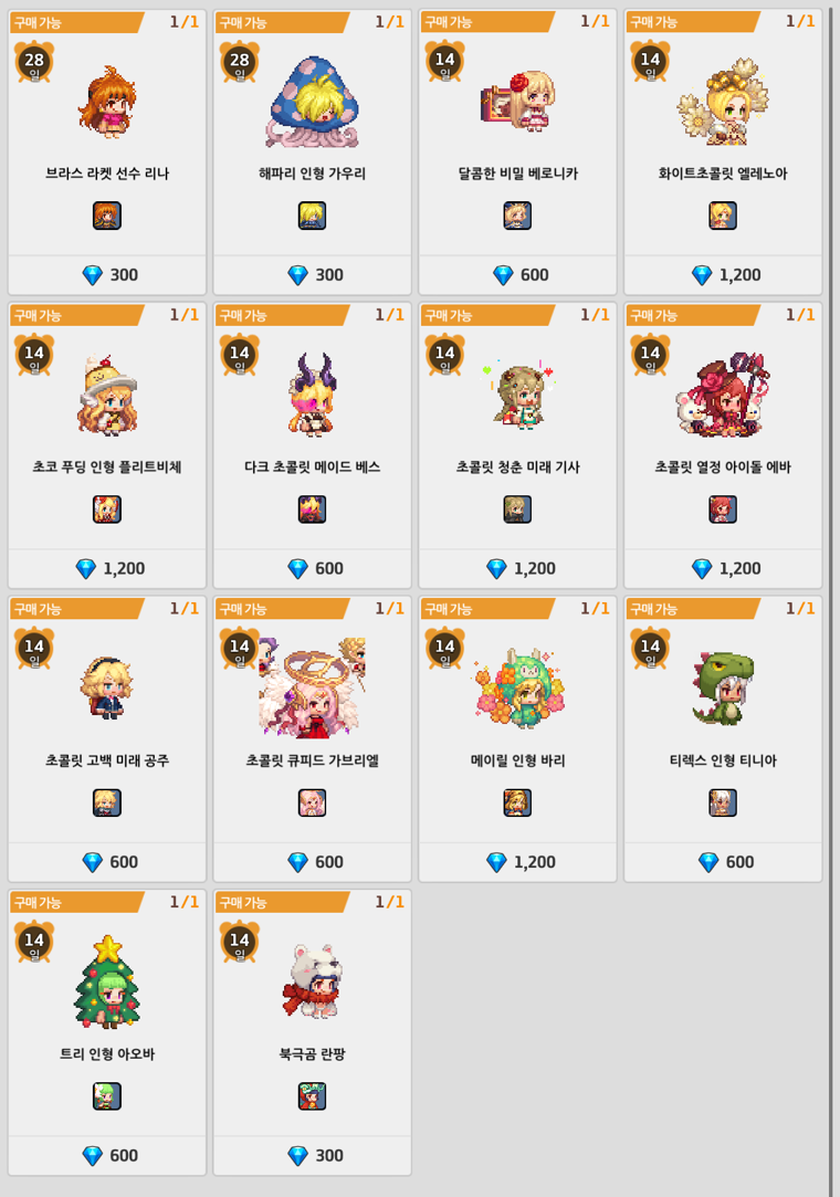 | 릴레이 패키지 #4 | 37,000원 | 전설의 각성석 20개 상급 꿈의 각성석 35개, 중급 꿈의 각성석 60개, 하급 꿈의 각성석 110개, 상급 공격의 각성석 180개, 중급 공격의 각성석 300개, 하급 공격의 각성석 450개 상급 방어의 각성석 180개, 중급 방어의 각성석 300개, 하급 방어의 각성석 450개 상급 체력의 각성석 180개, 중급 체력의 각성석 300개, 하급 체력의 각성석 450개 |