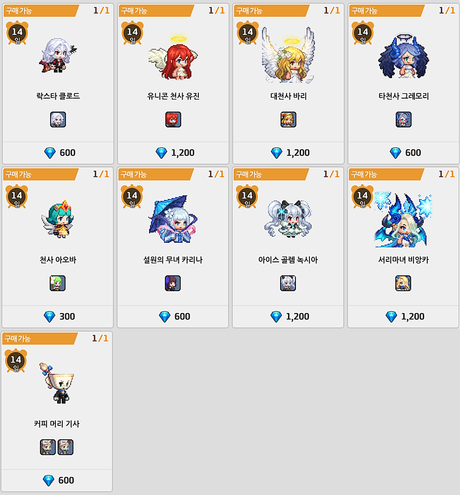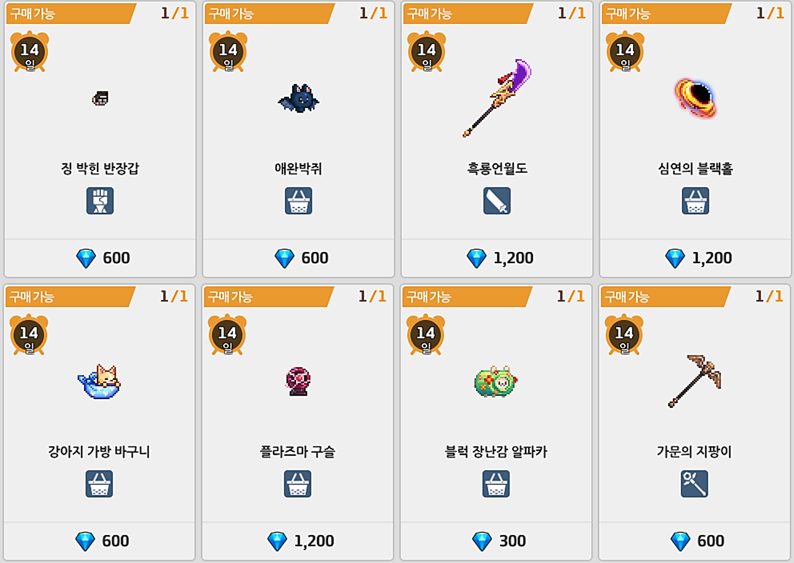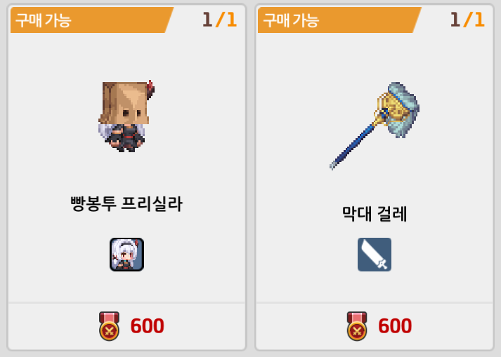 | 슬롯1 | 슬롯2 | 구매 즉시 지급 |