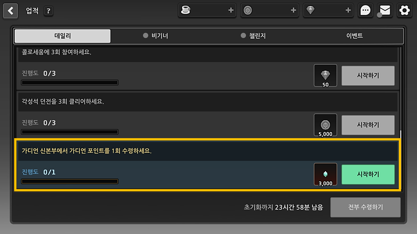 ㄴ 가디언 신본부 포인트 획득 데일리 미션이 추가됩니다.