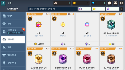 ㄴ 상점의 경우 '영웅 성장'에서 히어로 크리스탈로 꿈의 진화석을 구매할 수 있습니다.
