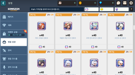 - 꿈의 진화석으로 구매 가능한 영웅 진화석 상품이 추가됩니다.