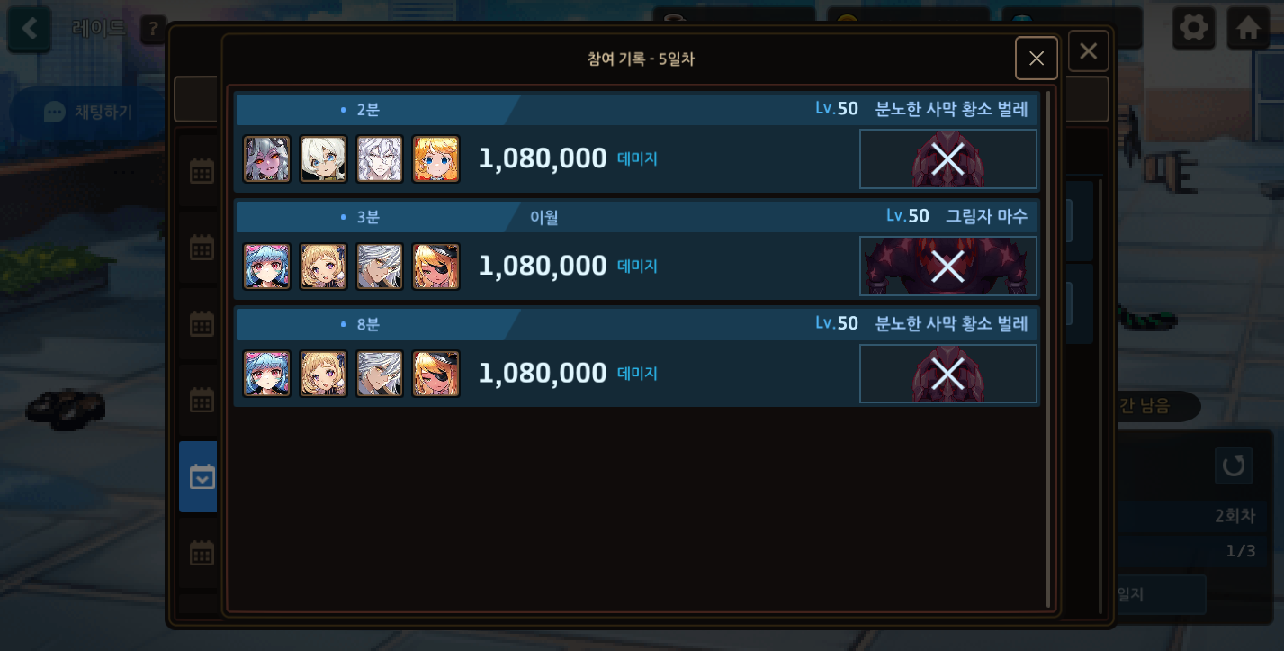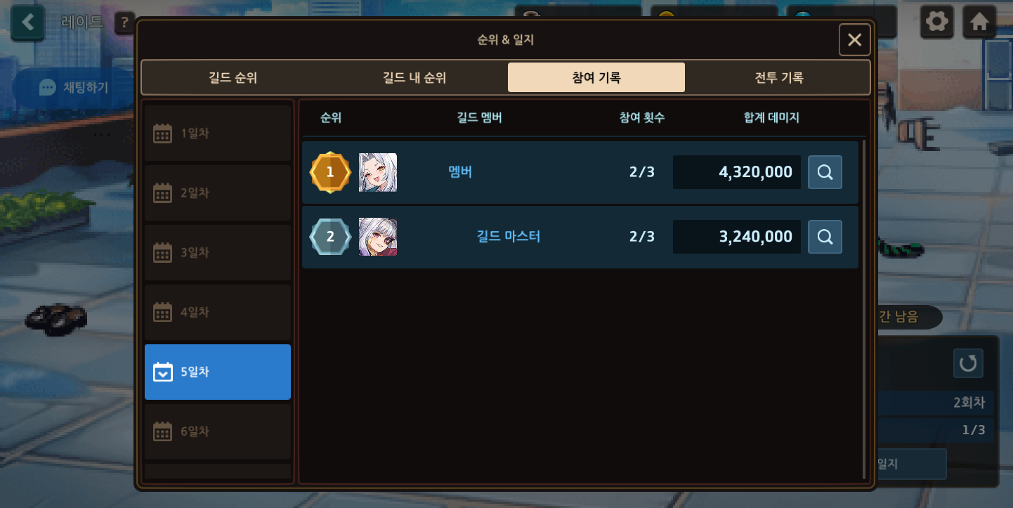 - 일차별로 합계 대미지와 전투 기록을 확인할 수 있도록 개선됩니다.