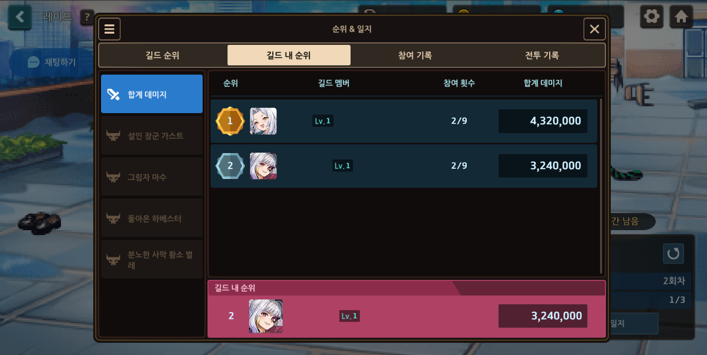 - 길드 내 순위의 합계 대미지 탭이 개선됩니다.