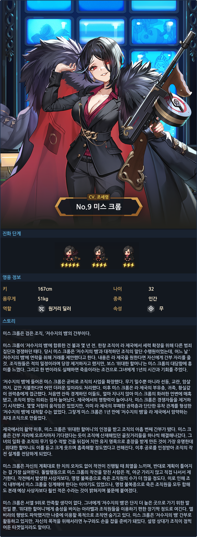 - 신규 영웅인 No.9 미스 크롬이 추가되고 한국어 보이스가 함께 추가됩니다. (CV. 조세령)