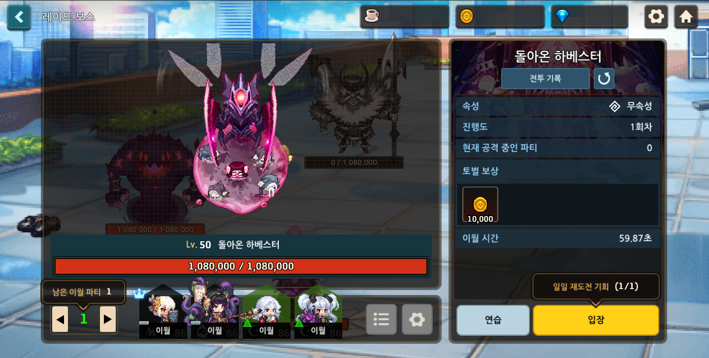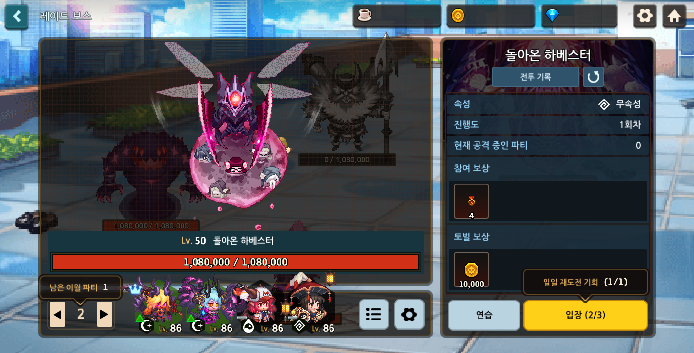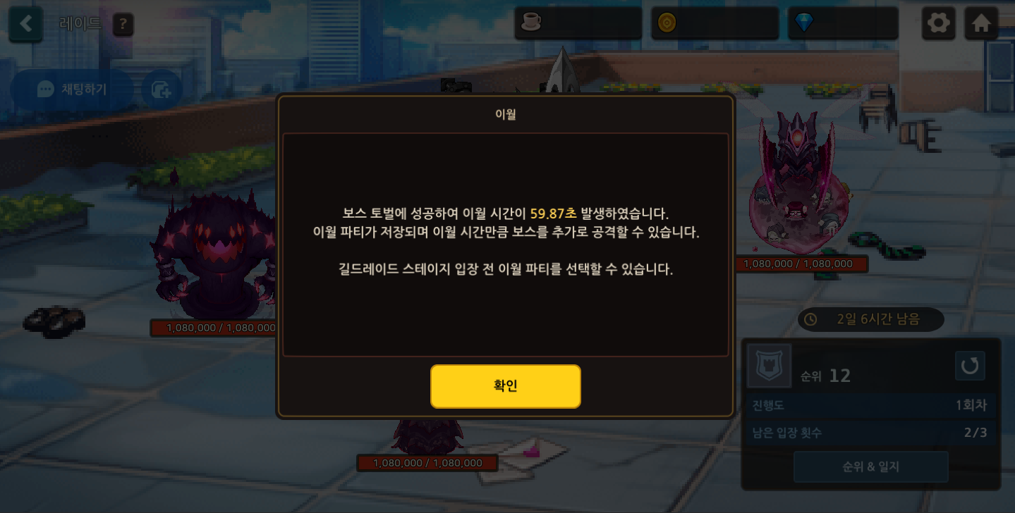 ㄴ 이월을 먼저 소모하지 않고 다른 파티로 길드 레이드 스테이지에 입장할 수 있도록 변경됩니다.