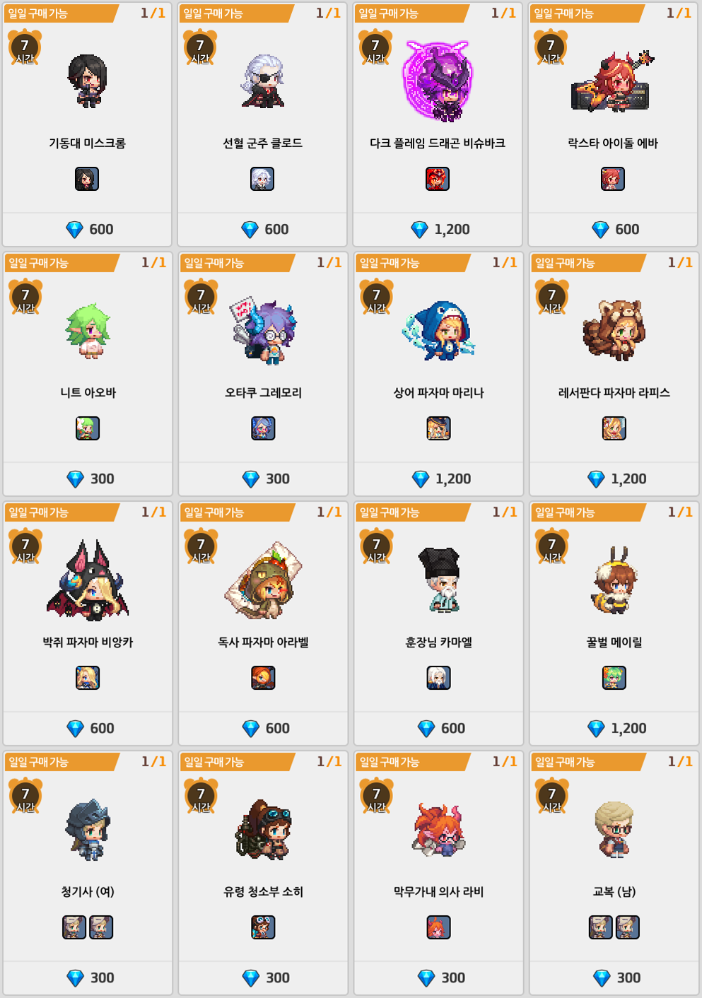 ※ 영웅 초기화 스톤 사용 시 구매 가능한 횟수가 초기화됩니다.