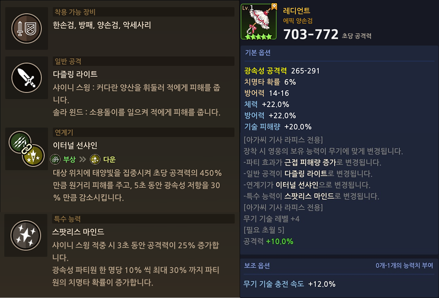 ※ 8월 25일 15:37 신규 장비 레디언트 이미지 수정
