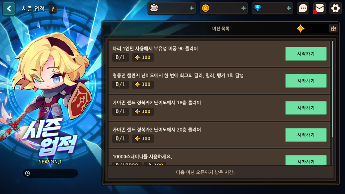 ㄴ 일부 미션은 시즌 중간에 오픈됩니다.