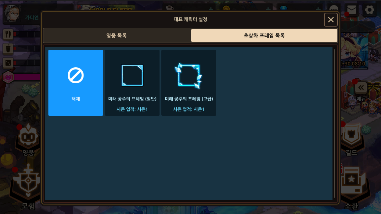 - 영웅 목록 오른편 [초상화 프레임 목록]에서 획득한 프레임을 확인하고 설정할 수 있습니다.