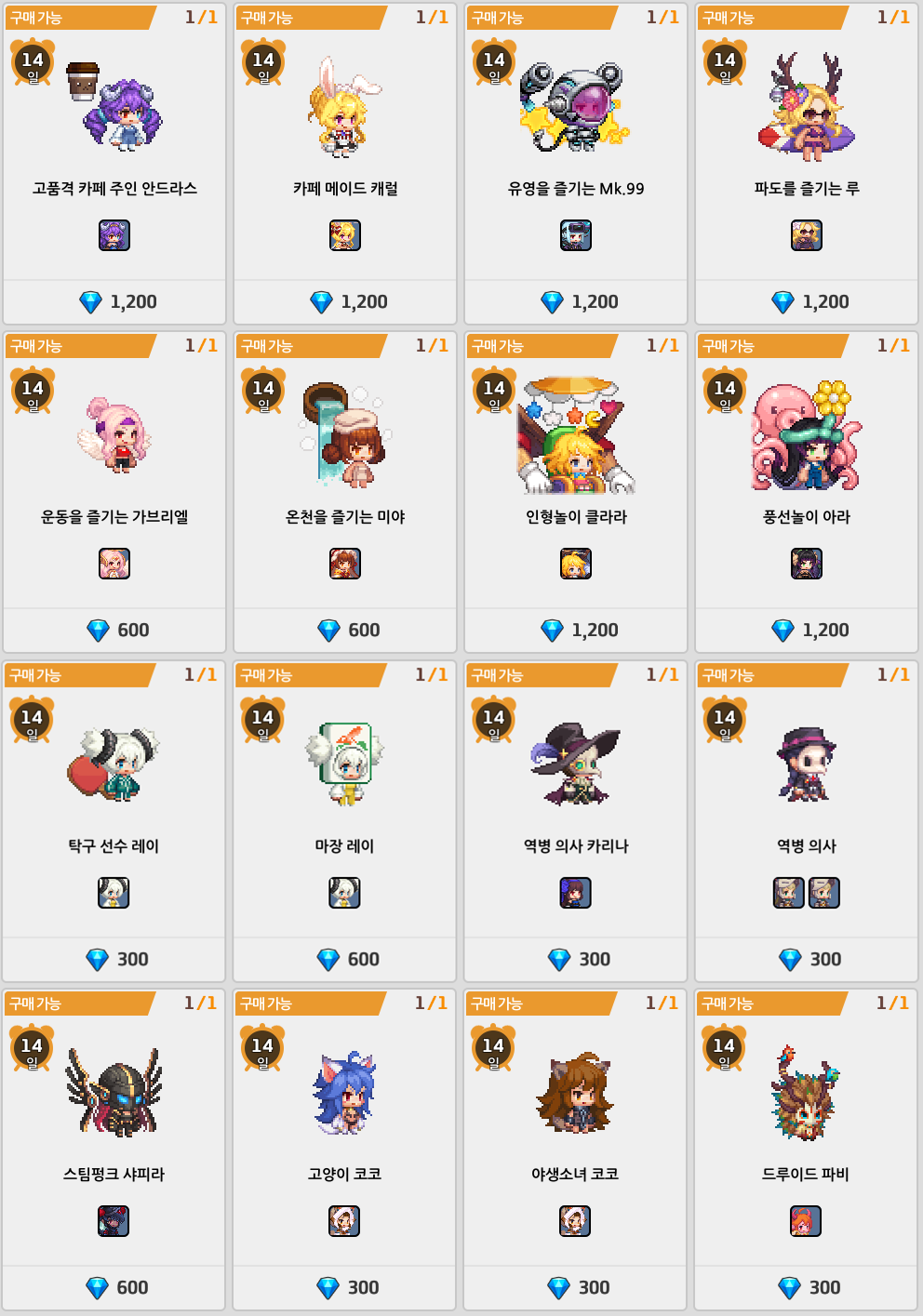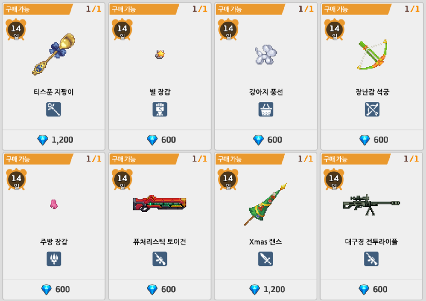 | 슬롯1 | 슬롯2 | 구매 즉시 지급 |