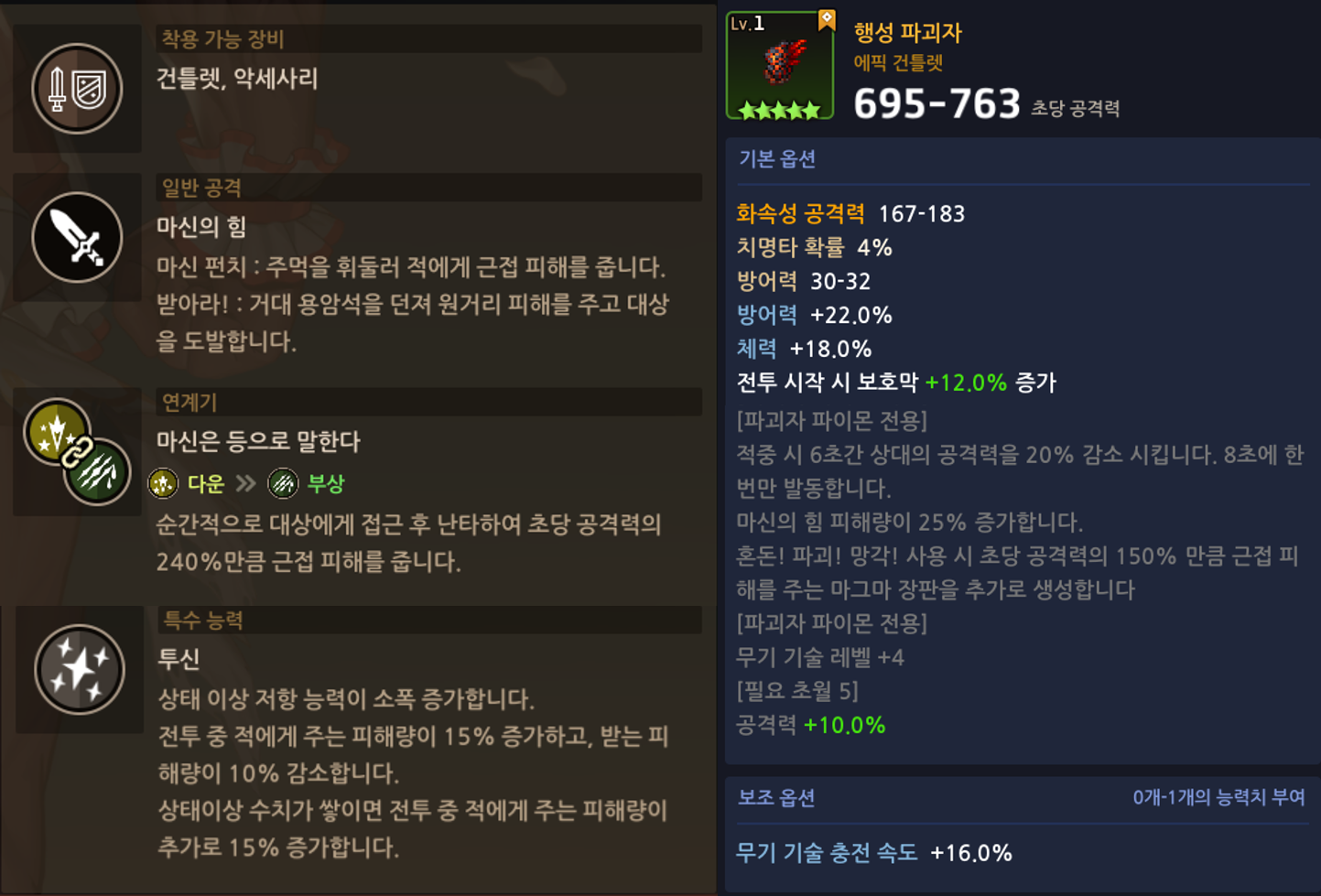 ㄴ 5성 최대 각성 시 파티 효과: [파티] 방어력 + 45%