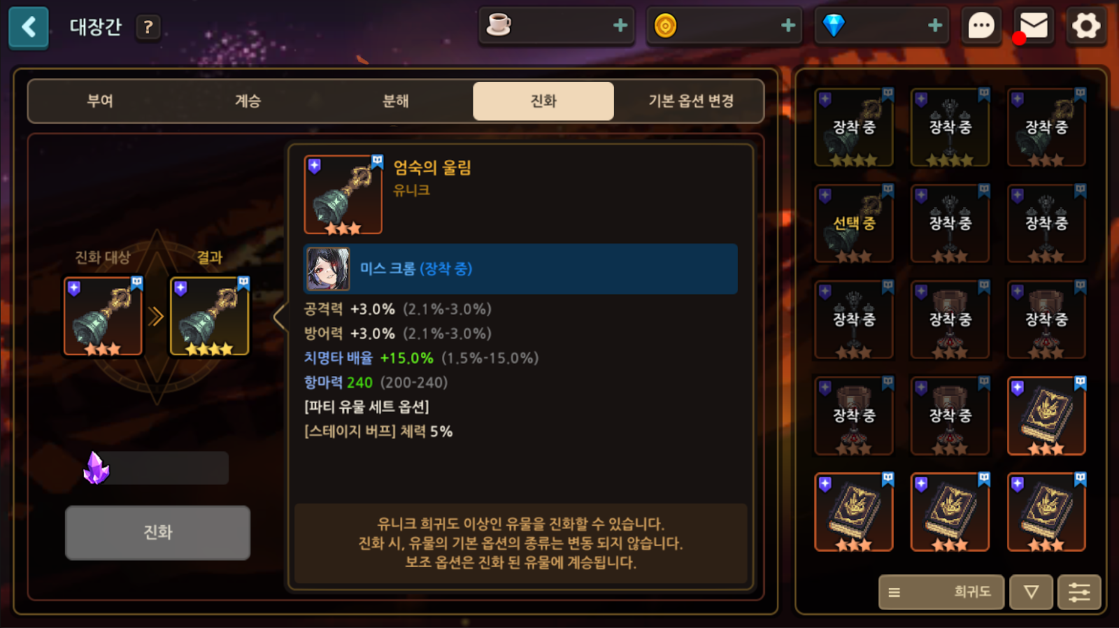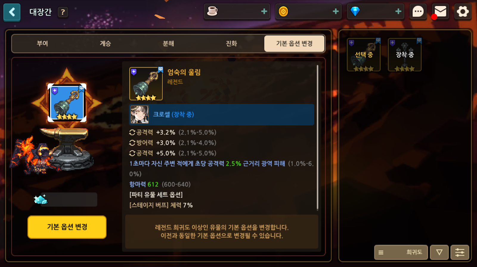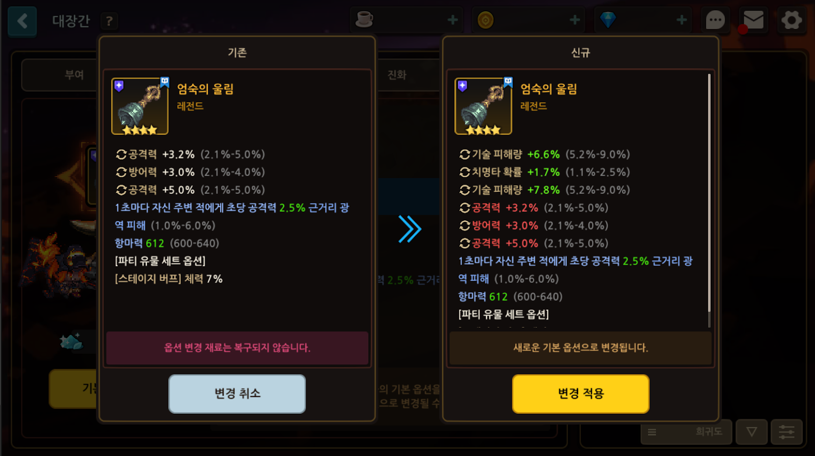 - 대장간에 진화, 기본 옵션 변경 기능이 추가됩니다.