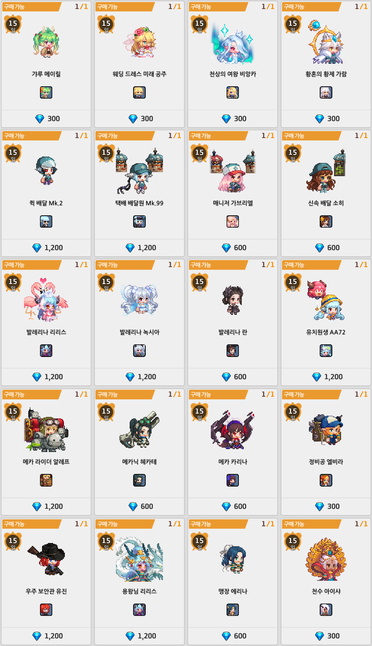 ※ 코스튬 구현 작품 1종은 300젬으로 판매되며, 기존 코스튬들과 동일하게 로테이션을 통하여 판매됩니다.