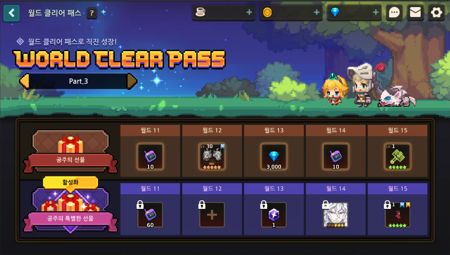- 월드 클리어 패스의 파트 3이 추가됩니다. (월드 11 ~ 월드 15)