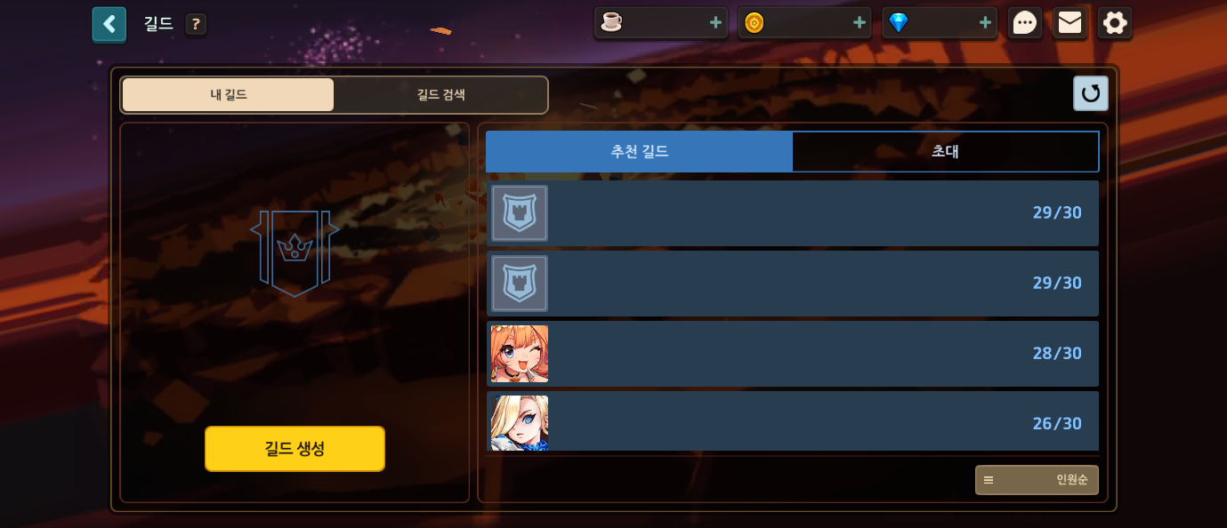 - 길드 추천 기능이 개선됩니다.