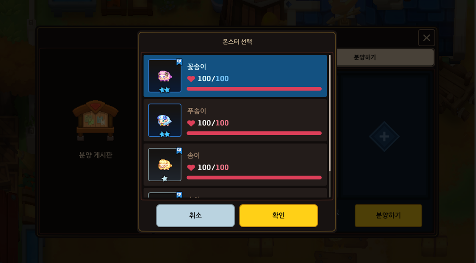 - 친밀도 100을 달성하고 우정의 증표를 받은 몬스터만 분양할 수 있습니다.