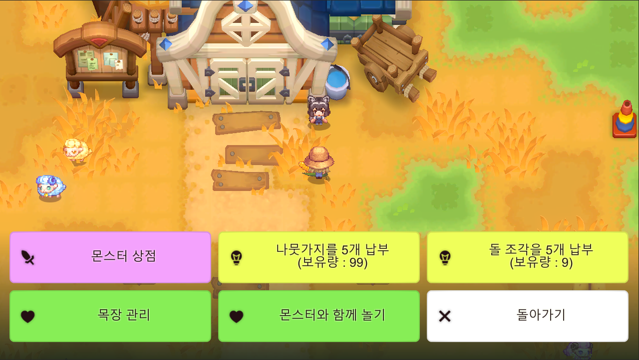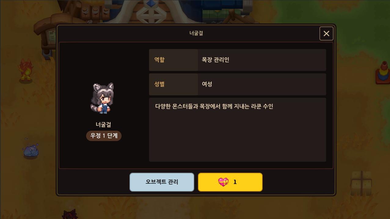 - [너굴걸] - 목장 관리 선택지를 통해 너굴걸의 우정 단계를 확인할 수 있습니다.