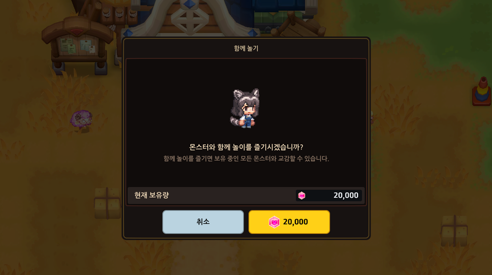 - 함께 놀기를 이용하면 보유 중인 몬스터와 교감하여 친밀도를 올릴 수 있습니다.