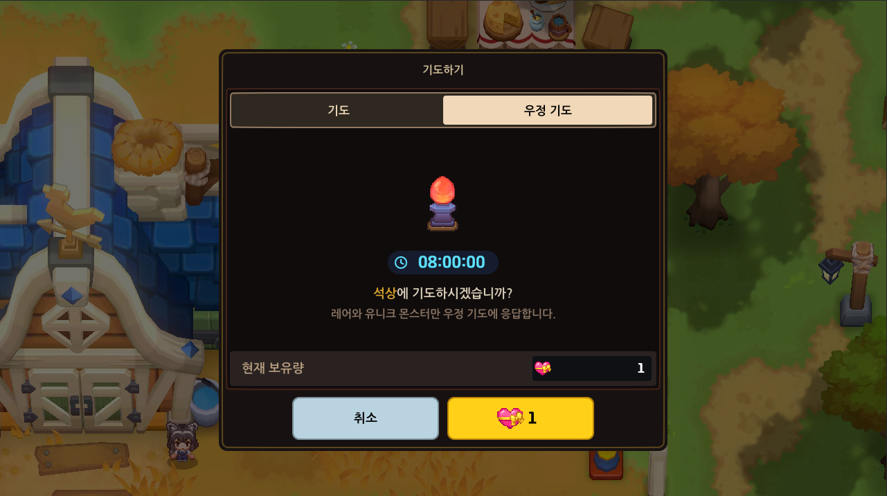 ㄴ '우정 기도'를 하면 레어와 유니크 몬스터가 기도에 응답합니다.