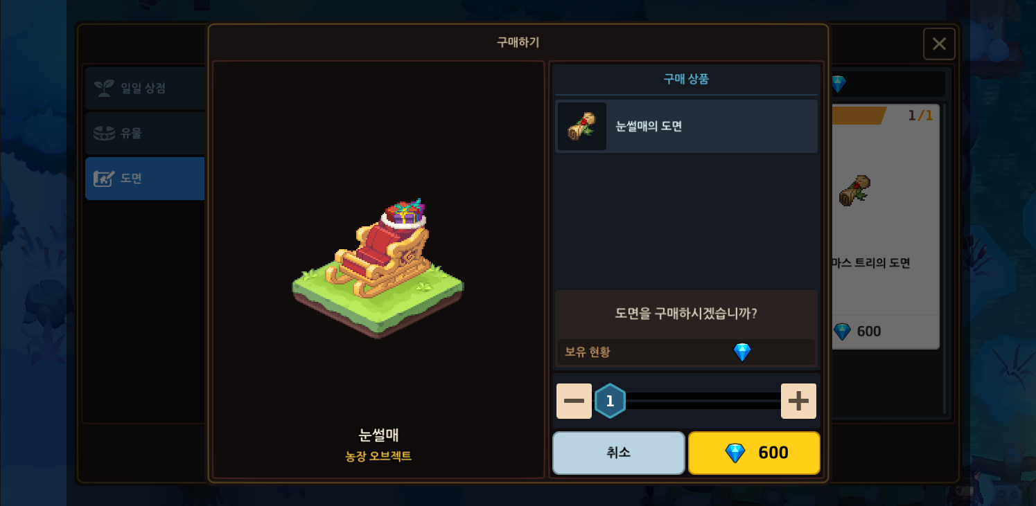 ※ '스노우볼 오르골'을 제작할 수 있는 도면은 농장 캐러밴 상점에서 기간 한정으로 구매 가능합니다.
