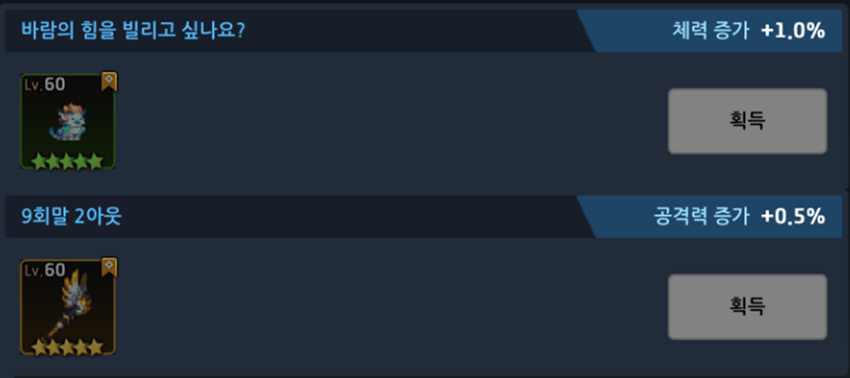 | 친구 (상급) | 전투 시작 시 친구 1기 소환 |