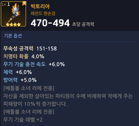 | 유니크 영웅 or 전용 무기 중 1개 선택 |