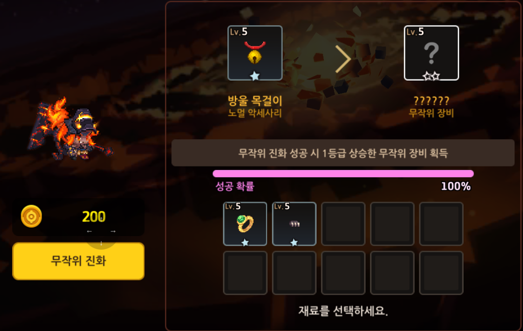 여기서 가장 중요한것은 뽑기로 뽑은 아이템의 경우 무작위 진화보단