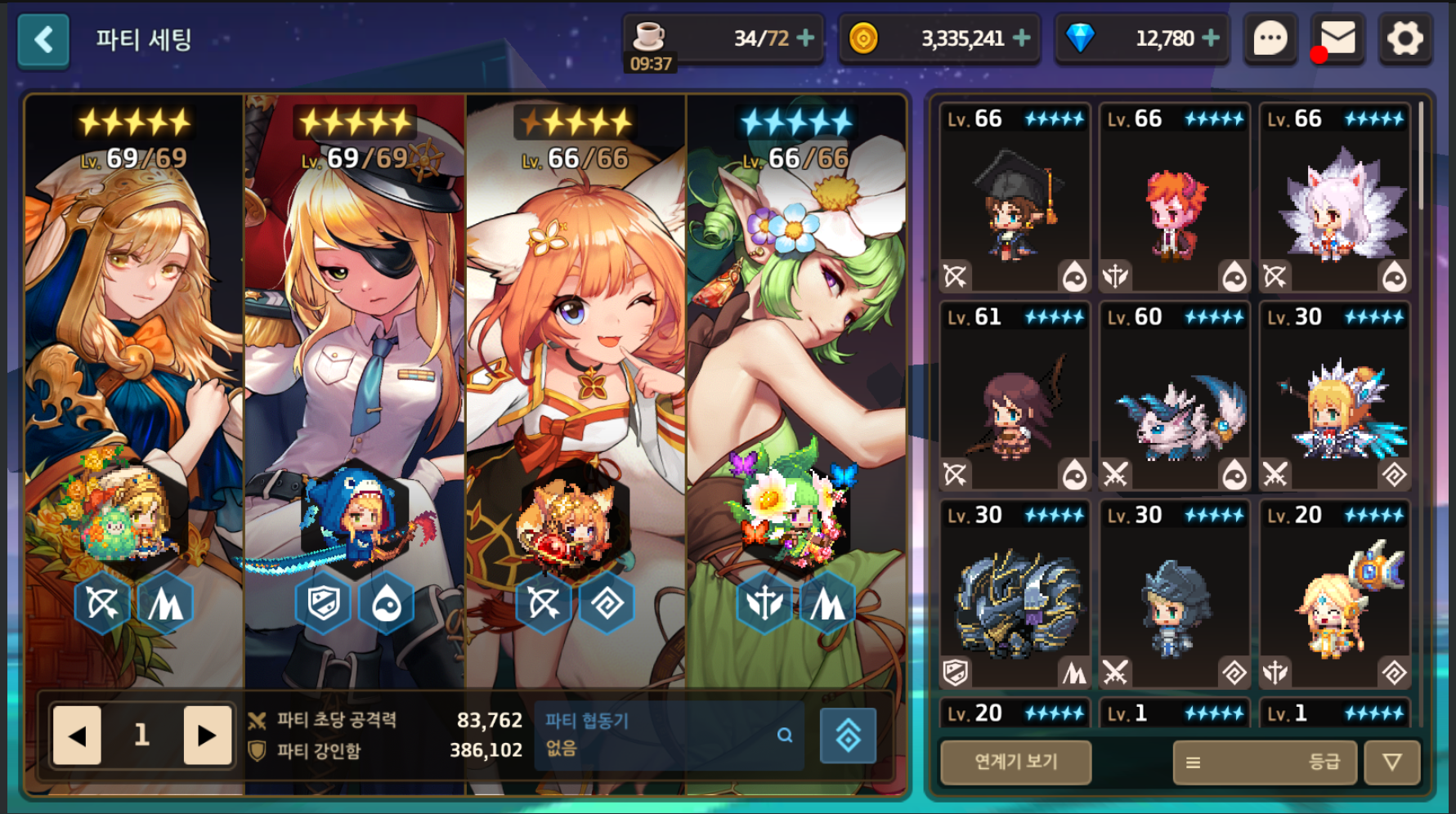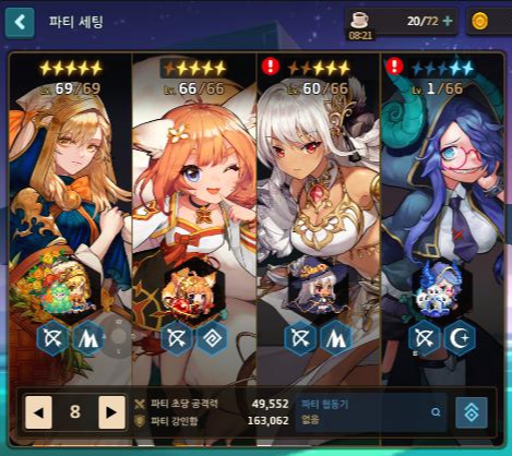 스토리를 밀고나서 우리의 첫목표는 70진화석던전을 뚫는 것입니다. 딜러캐릭 단하나라도 5성을 찍어줄수만있다면 보통 그캐릭하나로 70진화석던전을 오토로 돌릴수 있게됩니다. 그렇다면 나머지 캐릭들을 캐릭하나로 쉽게 키울 수 있겠죠?
