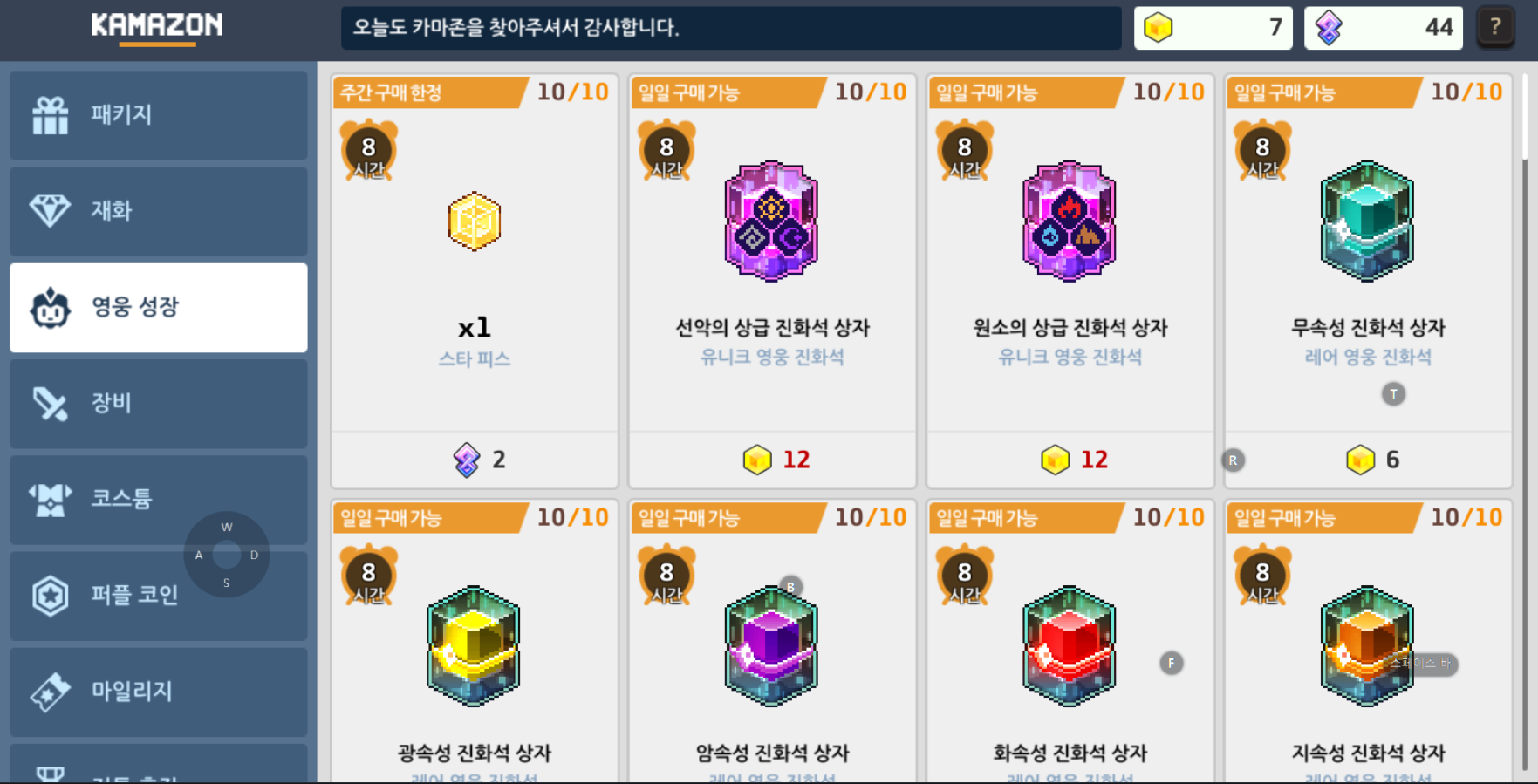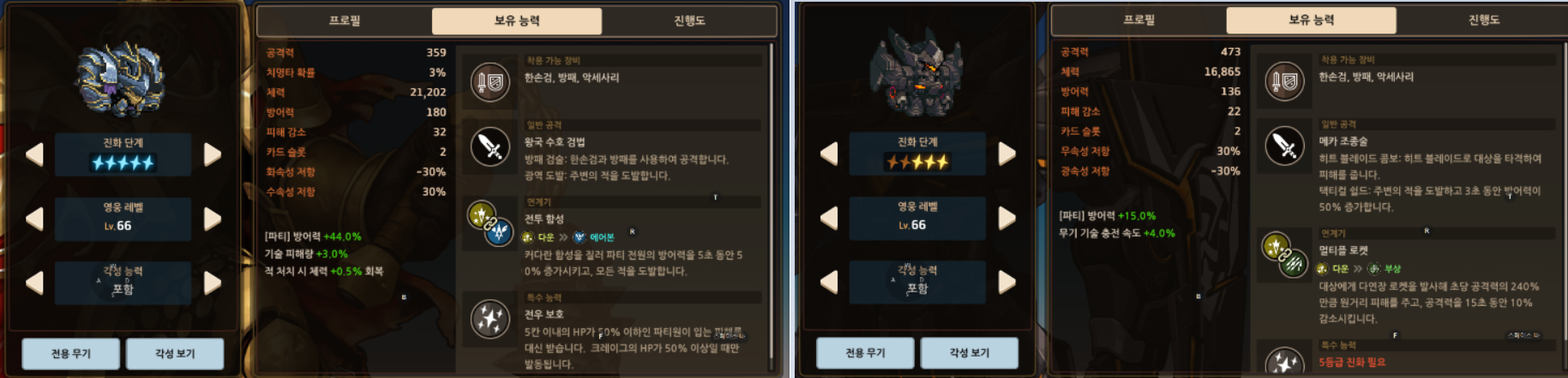 보통 이렇게 진행하시다보면 5스테이지 보스나 6스테 개미들 혹은 7스테 설인들에게서 막힐텐데 이때 필요한게 영웅진화입니다.
