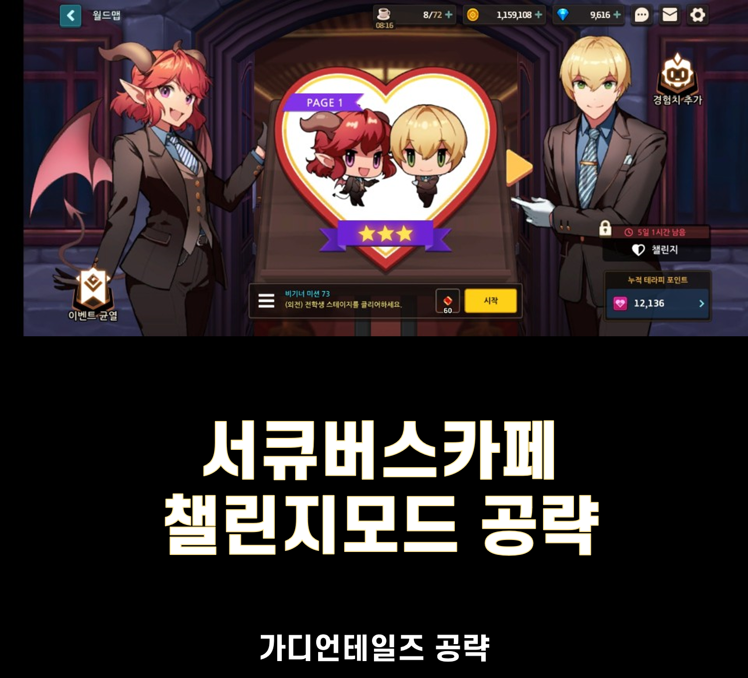 # 서큐버스카페 챌린지모드 공략 (에일리 어그로걸 페이퍼마스크) 작성자핑그르르|작성시간20.10.15|조회수4,886 목록 댓글 2 글자크기 작게가 글자크기 크게가 파티 구성원이 약해 카르멘은 깨지 못했습니다.. ㅠㅠ 나머지 공략내용은 영상첨부까지 첨부하였으니 참고하시면 되겠습니다. 도움이 되셨길 바랍니다. 감사합니다. 다음검색 현재 게시글 추가 기능 열기 북마크 공유하기 신고 센터로 신고 댓글 댓글 2 댓글쓰기 답글쓰기 댓글 리스트 작성자역찬 | 작성시간 20.10.15 작성자카셀 | 작성시간 20.10.15 저도 카르멘서 막힘 마리나가 바로터지던데... 댓글 전체보기