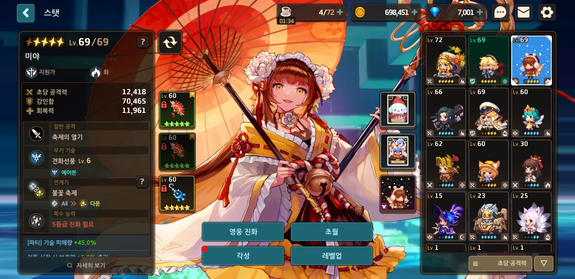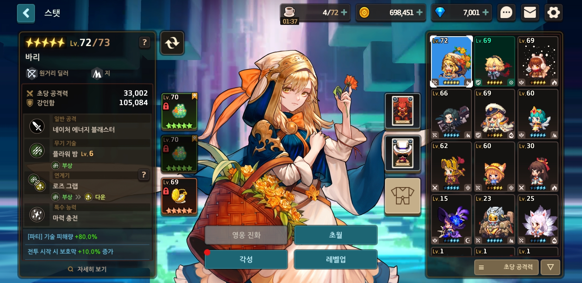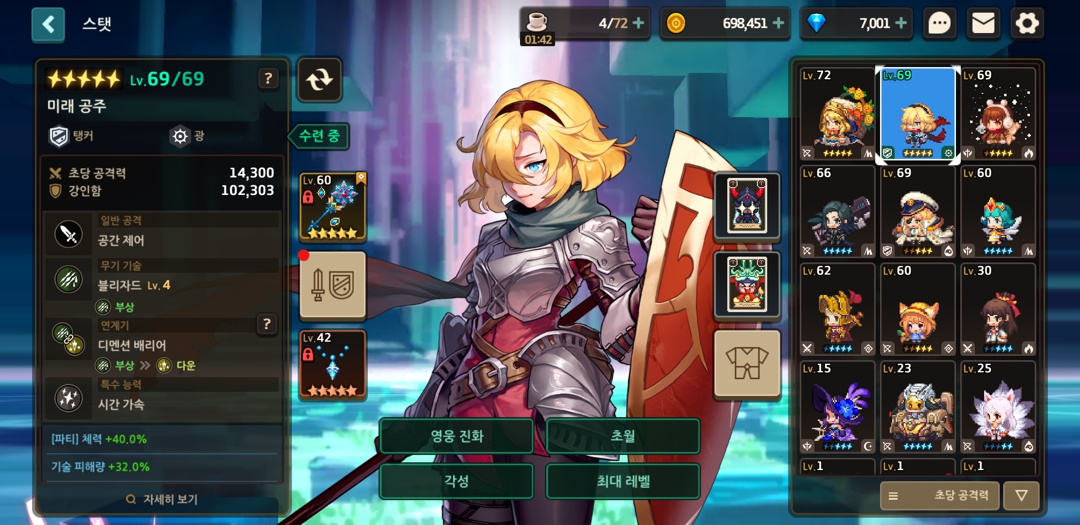 공주는 내마리나가 3성이라 체력버프 낮아서 넣은거임