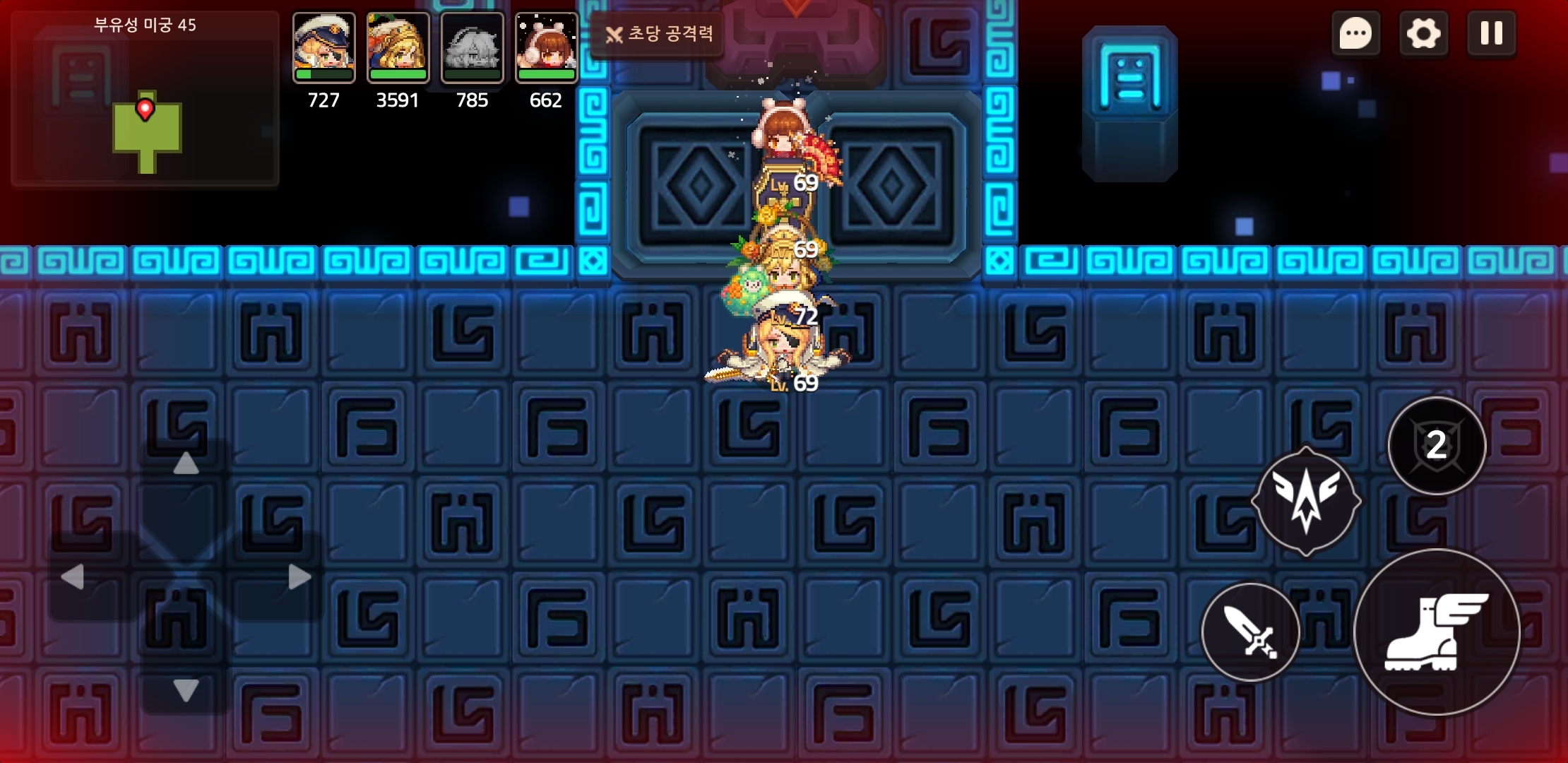 2.처음 시작하면 스킬쿨 기다렸다가 슬라임쪽 가서 슬라임에 풀링 + 스킬 1회축적 -> 파티원 3명 반대편으로 질주