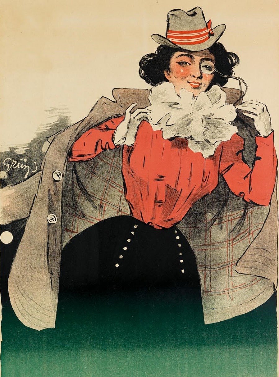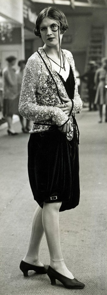'남성적인 겉옷과 단안경을 입은 여성'이